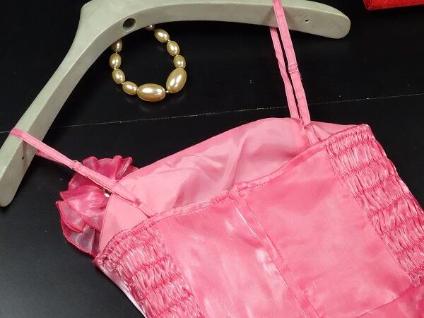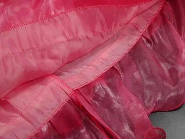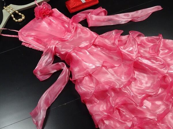 柔らかなシフォン素材のロングドレスです。胸元は、フラワ-モチ-フを施してスカ-トは、ティア-ドラインで流れるように広がる存在感があります。とても綺麗な色で存在感抜群です!裏地あり。