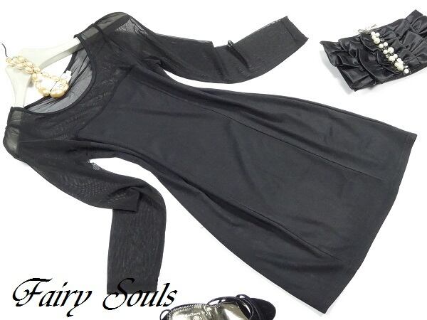 やわらかな素材に、胸元と袖、背中の透け感がセクシーな大人テイストのワンピース。(背中は肩からウエストの中間あたりまで透け感があります)細身で体にフィットしたデザインは女性の体のラインを美しく魅せてくれます。伸縮性少しあり。かぶるタイプ。裏地なし。