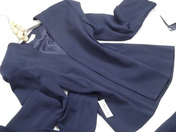 ジャケット2点とスカ-トの3点セットです。スカートは膝丈で、シンプルでエレガントなライン。ジャケットとあわせ、品の良い組み合わせになっています。上品で優しい大人の女性を表現してくれる一着です。スカートは後ファスナー。裏地有り。日本製。