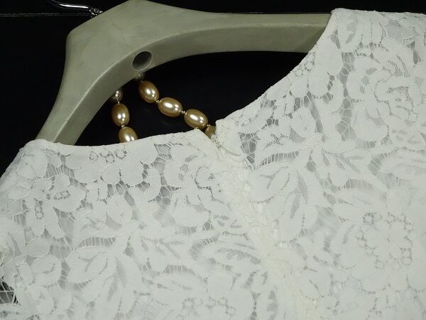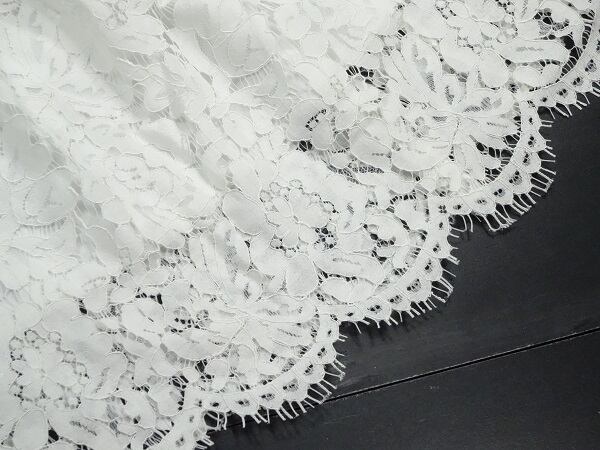 花柄総レースピュアホワイトのワンピース。全体に花柄をあしらったプリントレース仕様。ほんのりとした透け感が上品な女性を表現してくれています。パーティやイベント、コンサート、結婚式にと、さまざまシーンで活躍してくれる美しい一着。背中ファスナー。裏地付。