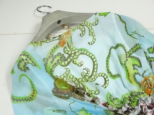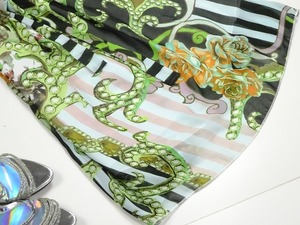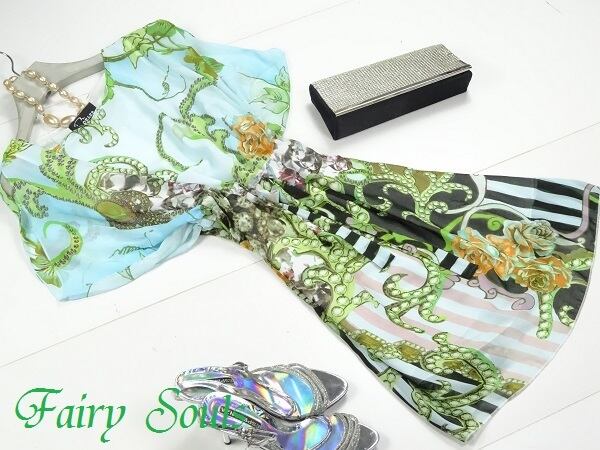 ふんわりシフォン生地を使用したスカ-フ柄のプリントが魅力的なシフォンワンピ-スです。着心地もとても良くこの一で華やぎます。裏地あり。
