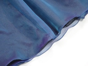 ステージフレアロング丈オーガンジーのスカート。艶やかなサテン地の上にオーガンジーをかぶせた華やかな一着。歩く度にふんわりと揺れる裾が視線を集めます。後ろファスナー。裏地付。