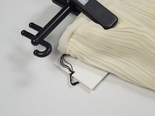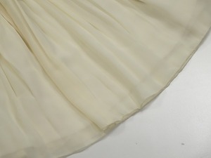 とても綺麗なプリ-ツの膝丈シフォンスカ-トです。細かいプリ-ツで上品もあり綺麗です。ただし、内側の洗濯表示タグが切り取られています着用には、問題ありませんが格安で出品しています。気にされる方はご遠慮ください。裏地付。サイドファスナ-有。