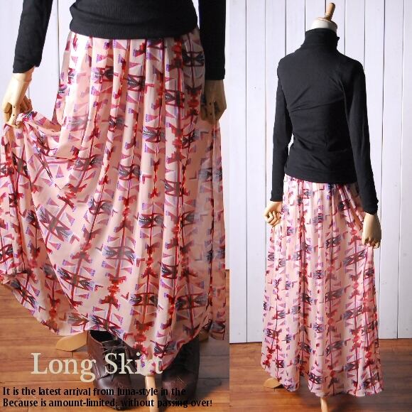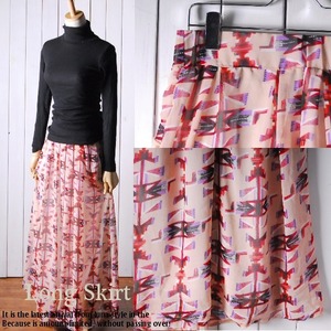シンプルなプリントプリ-ツスカ-トです。歩く度にふんわりと揺れる裾が視線を集めます。!!裏地付。ファスナ-なし。