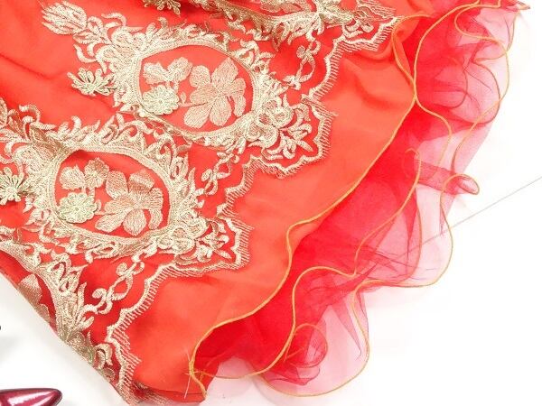 輝く金色の刺繍と、首元のプリ-ツフリルがとっも美しいAラインワンピ-スです。優雅でフェミニンなデザインですので、結婚式、二次会、イベント、パーティ・・・と、様々なシーンで活躍してくれる一枚です。裏地あり。