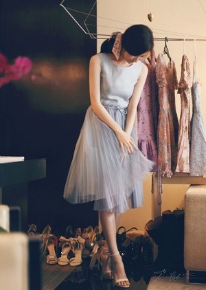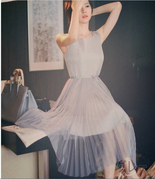 スカート部分がシフォン素材で風になびき女性らしさをウップ。大変エレガントで女性らしさを思う存分引き出してくれる一着です。裏地付。