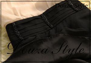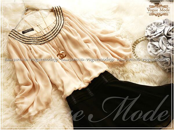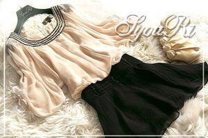 ウエスト切替ビーズ飾りツ-トンカラ-ワンピースです。ふんわりとした優しく上品なイメージを与えてくれます。襟は丸襟で四重のビーズ飾りが素敵です。袖は軽いふんわりドルマンスリ-ブです。裏地付。背中ファスナ-有。