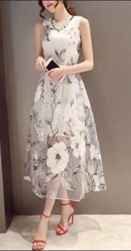 ★送料無料★S(7号)☆ノ-スリ-ブ花刺繍ロング丈ワンピ(OPN5659)
