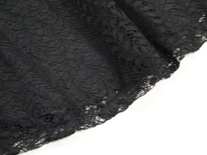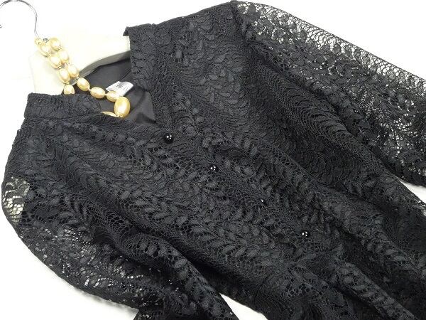 総レ-ス立て襟前ボタンのワンピ-ス。襟は3cmほどの立て襟。V字に少し空きがあり、ウエストにかけてフロント部分がボタン留めになっています。脇にファスナーがあるので着やすいデザイン。レースの透け感がとても上品でエレガントです。裏地有。脇下ファスナ-有。