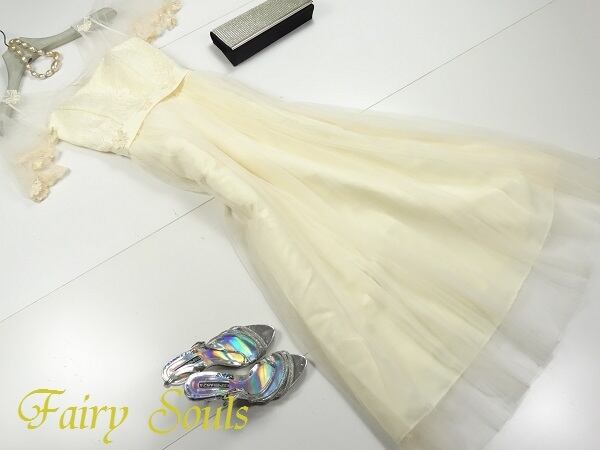 サテン地の上にレ-スが重ねられたとてもお洒落で上品なロングドレスです。腰から自然に広がるフレア-がとても綺麗で女性度UP間違いなしです。右脇下ファスナ-有。裏地なし。