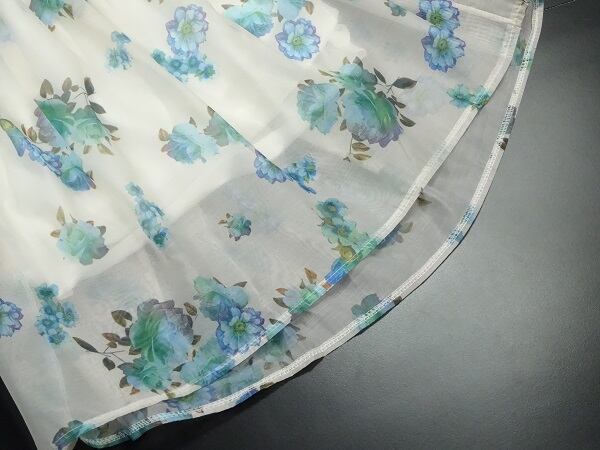 トップスが涼しげでスカ-トも花柄で夏らしい上品な2点セットです。スカ-トは後ろのみウエストゴムになっています。裏地あり。スカ-トサイドファスナ-有。