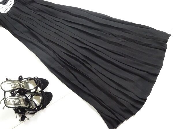 トップにレース仕様がほどこされたマキシ丈のプリーツワンピース。品の良い女性らしいシルエットがとても美しいデザインです。背中ファスナー有。裏地有。
