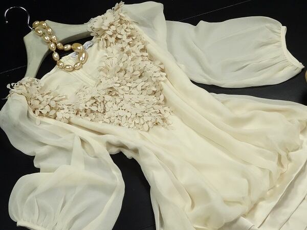■サイズ L(11号) バスト:約88cm ウエスト:~約90cm着丈: 80cm 袖丈 :44cm 肩幅:約37cm