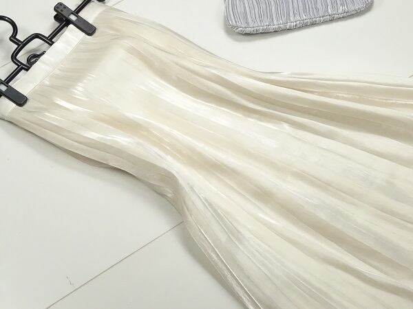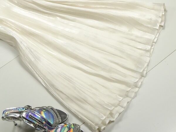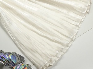 上質ロングプリーツスカ-ト です。しなやかでやわらかなシフォンの生地をたっぷり使用し女性らしさUP!。ウエストは後ろゴム仕様でゆったりと着て頂けます。風に優しくなびき、歩くたびに着る人の足元を美しく見せてくれる一着です。ファスナーなし。裏地付。