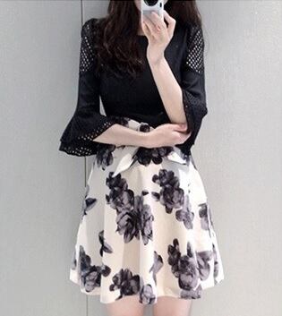 とても優美かつ綺麗な膝丈フレア-ワンピ-スです。ウエストから裾にかけてはたっぷりと生地を使用したフレア。袖のレ-スが女性らしいエレガントでフェミニンな一着です。背中ファスナ-有。裏地付。リボンベルト付。