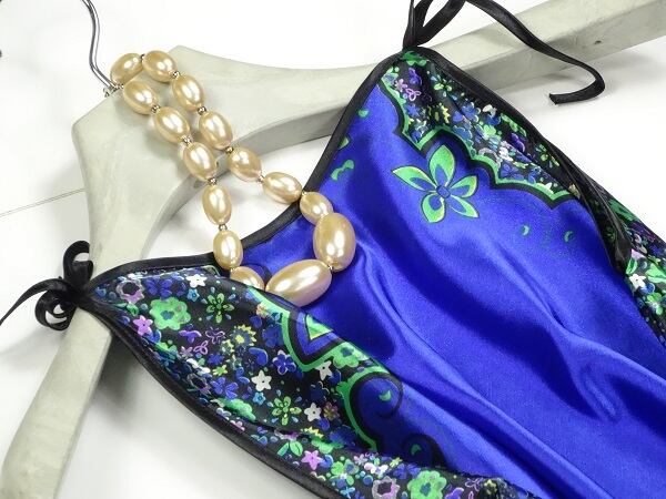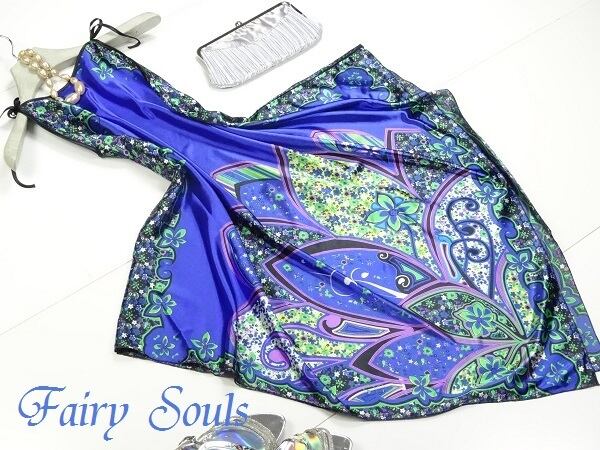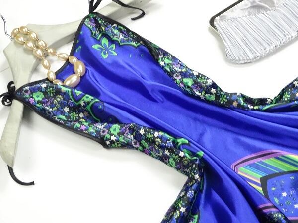 シルクの肌触りがとても良く着心地抜群な素材のエスニック変形ワンピ-スです。パ-ティ-はもちろんちょっとしたお出かけにもお役に立てる一着です。ファスナ-なし(かぶるタイプ)。裏地なし。