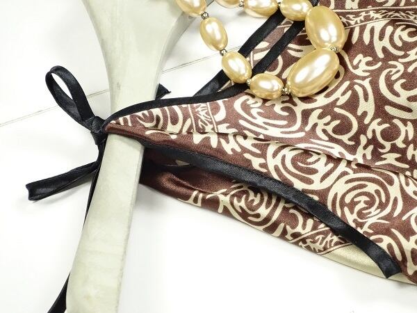 シルクの肌触りがとても良く着心地抜群な素材のエスニック変形ワンピ-スです。パ-ティ-はもちろんちょっとしたお出かけにもお役に立てる一着です。ファスナ-なし(かぶるタイプ)。裏地なし。