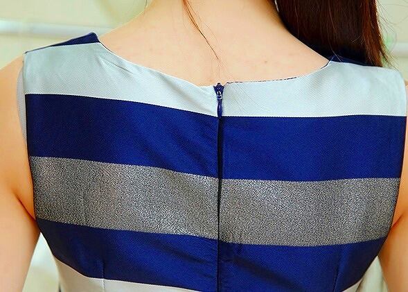 人気のAラインのボーダ-ドレスワンピ-スです。大人っぽい色合いで結婚式やパ-ティ-にもお薦めの一着です。背中ファスナー有。裏地有。