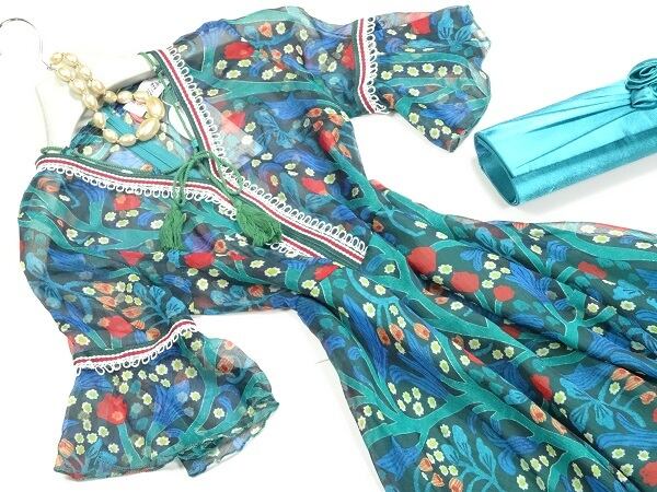 ふんわりシフォン生地を使用したオリエンタル調花柄プリントが魅力的なシフォンワンピ-スです。着心地もとても良くこの一で華やぎます。スカ-ト部分裏地あり。背中ファスナ-有。