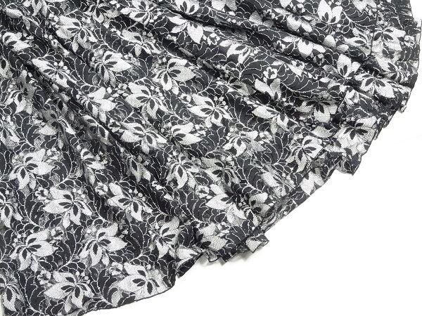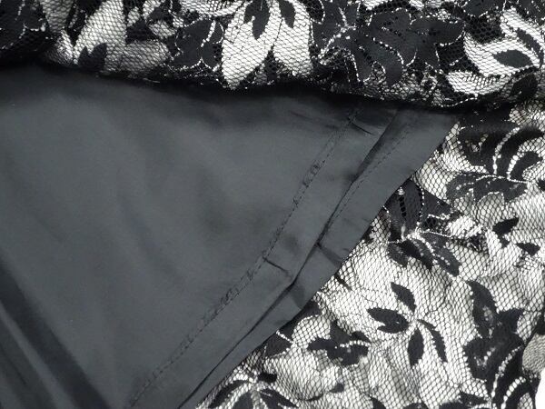 光沢のある銀ベージュの下地の上に刺繍の入った黒色メッシュがふんわりとおおった、大変贅沢な一着です。しなやかだけれど、たっぷりとしたボリューム感を感じさせてくれます。ゴージャスで上品なお嬢様テイストのデザインは、パーティやイベント、結婚式にと、様々なシーンで活躍してくれます。背中ファスナー有。裏地あり。ベルト付き。