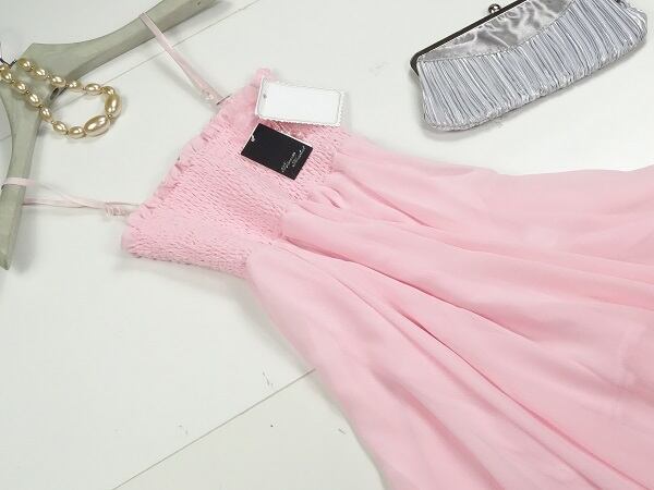 裾の丈が不規則なエレガントで女性度アップパ-ティ-ドレスワンピです。動いた時の裾の揺れ感がとてもセクシ-注目度抜群です。裏地あり。ファスナ-なし。