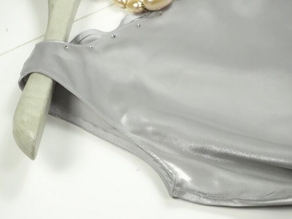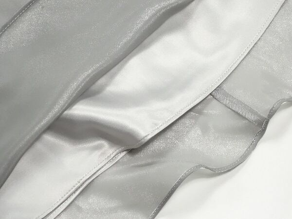 上質な素材感の女性度アップ光沢シルバ-オ-ガンジ-ドレスです。角度によって強めの光沢がある生地でとてもエレガントかつ上品な一品です。注目度抜群です。裏地有。背中ファスナ-有。ショ-ル付き。