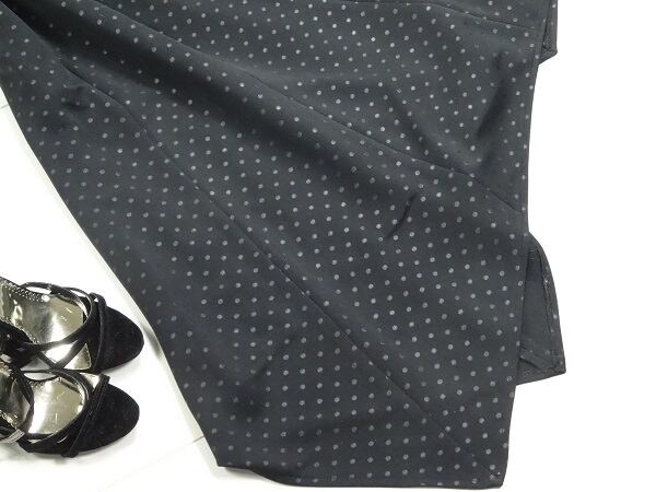 黒の水玉模様サテンワンピ-スです。裾が斜めになっていて女性らしさを醸し出しています。発表会やパ-ティ-にいかがでしょうか。左サイドファスナ-有。裏地有。