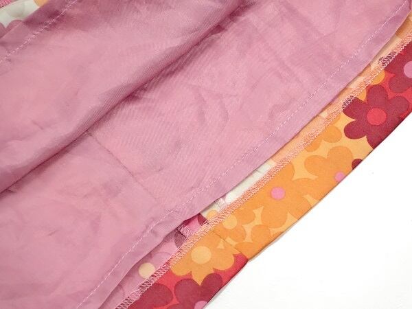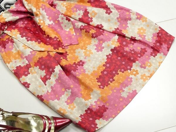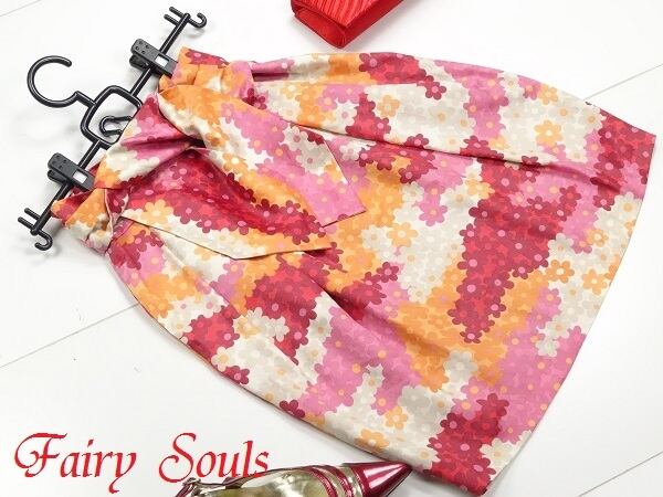 花柄リボンベルトフレア-スカ-トです。前のウエストリボンがとても可愛いです。後ろファスナ-あり。裏地付。