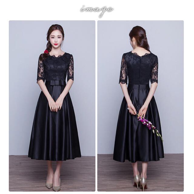 エレガントパ-ティ-ワンピ-スです。気品に満ちたとてもエレガントで上品なひとクラス上をいく一品です。トップス部分のレースの透け感もとても上品でエレガントです。裏地有。背中ファスナ-有。