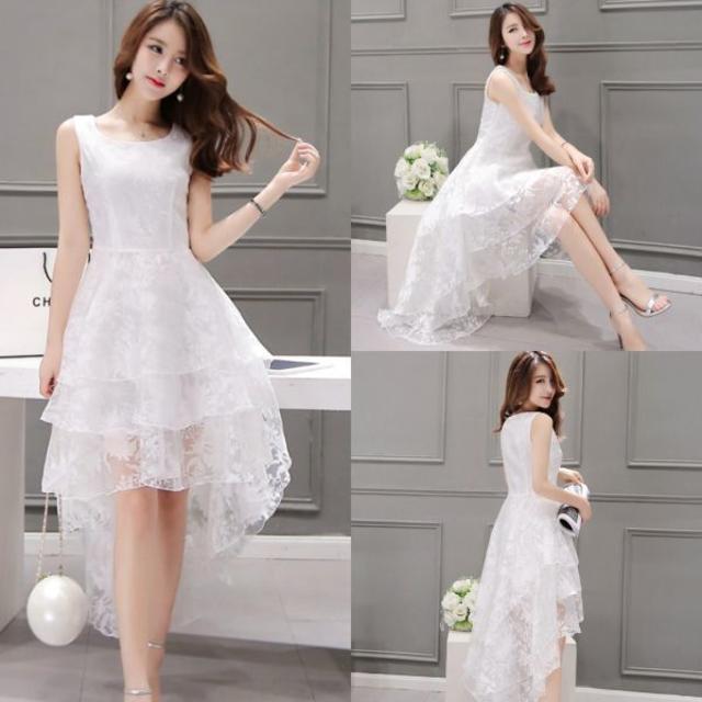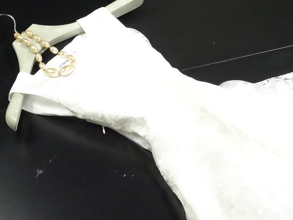 花模様のオーガンジ-マキシ丈のワンピース。薄い透け感がやわらかな印象を与えてくれています。大きなラウンドネックにノースリーブも全体の中でバランスが良く、ピュアでフェアリーなデザインになっています。煌めく太陽の光の中でも、また新緑の爽やかな風の中でも、着る人を美しく魅せてくれる一着です。前と後ろで丈の長さが違います後ろが長いです。裏地有り。右サイドファスナ-有。