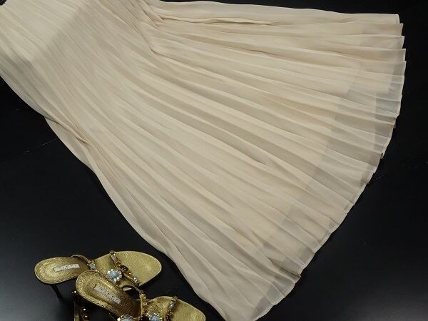 デザインロングプリーツスカ-ト です。しなやかでやわらかなシフォンの生地をたっぷり使用し女性らしさUP!。ウエストはゴム仕様でゆったりと着て頂けます。風に優しくなびき、歩くたびに着る人の足元を美しく見せてくれる一着です。ファスナーなし。裏地付。