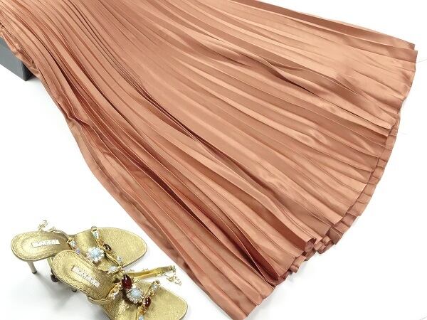滑らかなサテン調光沢プリ-ツスカ-トです。動くたびに揺れるエレガントなスカ-トです。サイドファスナ-有。裏地あり。