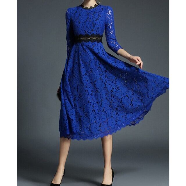 デイシ-刺繍総レ-スフェミニンなデザインのミモレ丈ワンピ-スです。ウエストにデイシ-柄刺繍がデザインされています。スリムに見えるデザインで大人の女性を醸し出してくれる一着です。裏地あり。背中ファスナ-有。