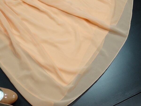 ピンクの襟元フェイクパールのワンピドレス。やわらかいピンクのシフォン地を使用。襟元の4重のシルバーのフェイクパールが華やかさを演出。襟元から裾にかけてゆったりと広がったAラインのシルエットが美しい一着です。パーティやイベント、結婚式など、様々なシーンで、気品のある印象を与えてくれる一枚です。裏地有。ファスナ-なし。