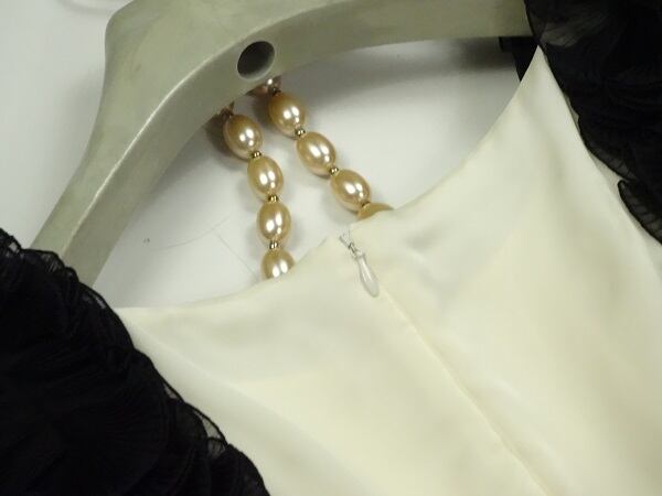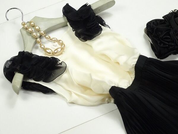 とろみ感プリーツのワンピースです。トップスはアイボリ-でピュアな印象に。ウエストから裾へかけて1cmほどのプリーツをとり、全体が優しい印象に仕上がっています。デート、お呼ばれ、パーティ、コンサート、結婚式にと、さまざまなシーンに活躍してくれます。裏地有。背中ファスナー有。