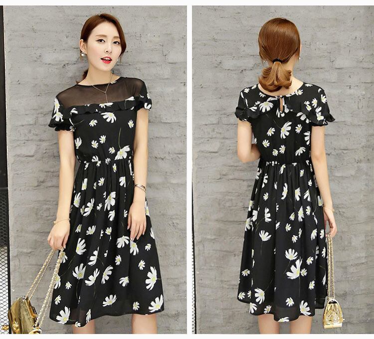 シースル-切替フレア-ワンピ-スです。胸元上のシ-スル-がとてもエレガントで着心地滑らか感がとても魅力的です。ファスナ-なし(首後ろボタン1つあり)。裏地有り。