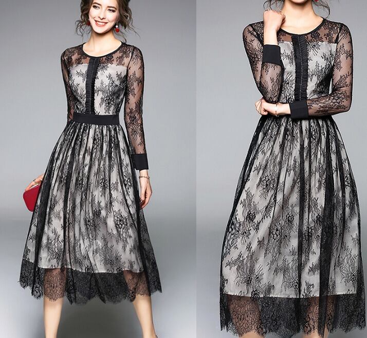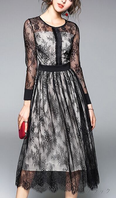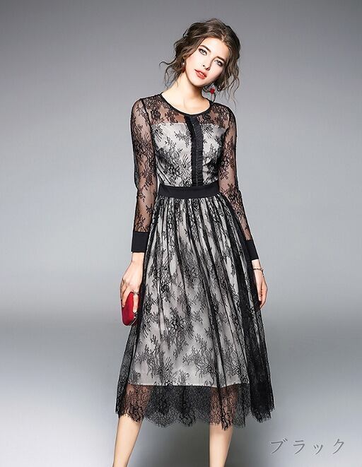 長袖透け感のあるレースのインナー付きワンピース。おちついたオフホワイトの下地が、上にかぶせたシースルーのレースの繊細な花模様を美しく見せています。動くたびに、しなやかで軽やかなレース地が風に揺れ、フェミニンな印象を与えてくれます。バランスが良く、ピュアでフェアリー。煌めく太陽の光の中でも、また新緑の爽やかな風の中でも、着る人を美しく魅せてくれる一着です。裏地(インナー)付き。背中ファスナーあり。