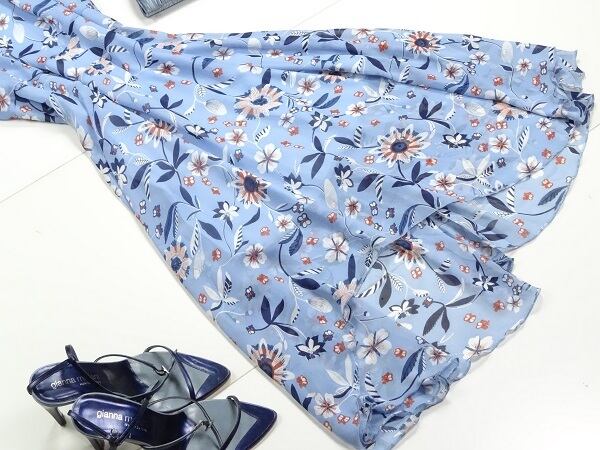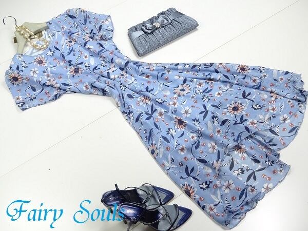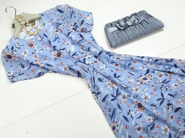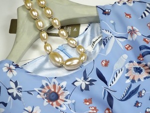 花模様がプリントされたシックなプリ-ツワンピースです。プリ-ツの揺れ感がセクシー感をかもしだしているエレガントな一着です。裏地有り。背中ファスナー有。