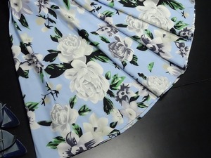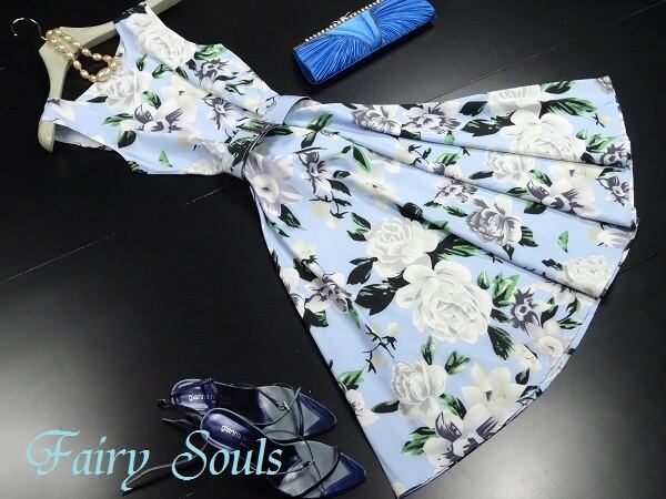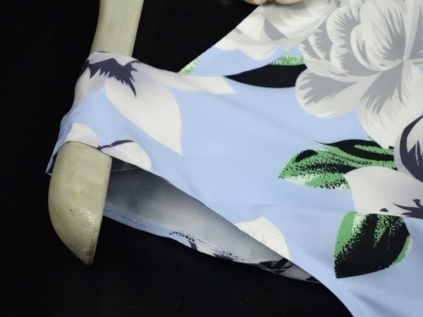 花柄がとても綺麗で涼しげなノ-スリ-ブワンピ-スです。とても軽くて着やすいワンピ-スです。背中ファスナー有。裏地なし。ベルト付。