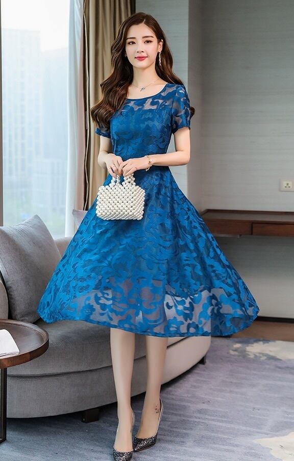 透け感が美しいレース仕様のワンピ-ス。ウエストで切り返しが入り、裾までボタニカル柄をあしらったレース仕立ての生地をたっぷりと使用。ボリュームを出し華やかな印象に。袖は透け感があり、二の腕がほんのりと見え、品の良いセクシー感をかもしだしています。シックでやさしくエレガントな一着です。右脇ファスナーあり。裏地付き。