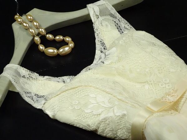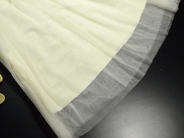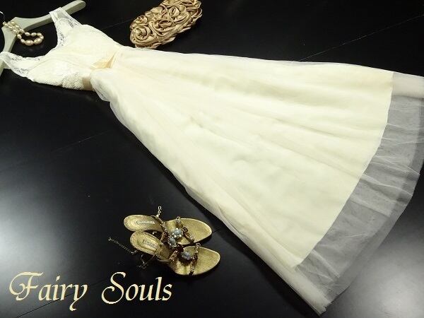 胸もとに立体的な刺繍が施されたシャンパンゴールドのロングドレスです。背中部分がシャーリング仕様になっているので伸縮性があり、着心地の大変良いデザインでパーティや結婚式、コンサートなど、様々なシーンで活躍してくれる一着です。右サイドファスナー有。背中シャーリング。裏地有。