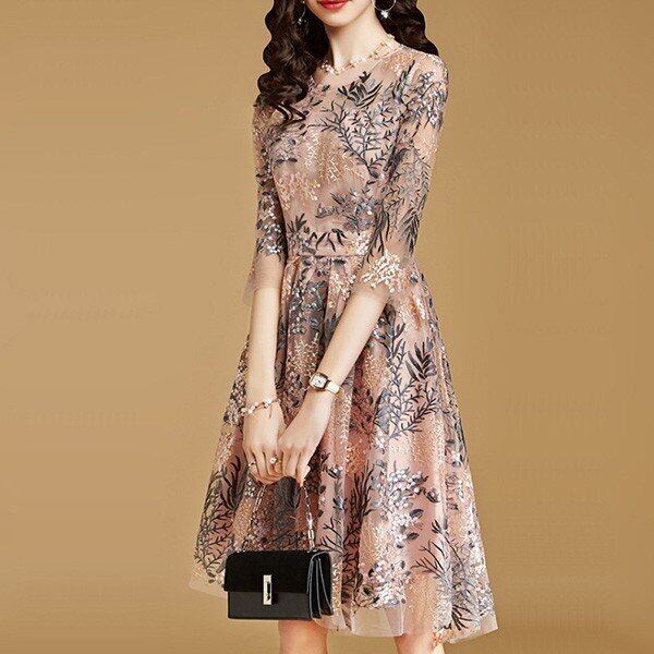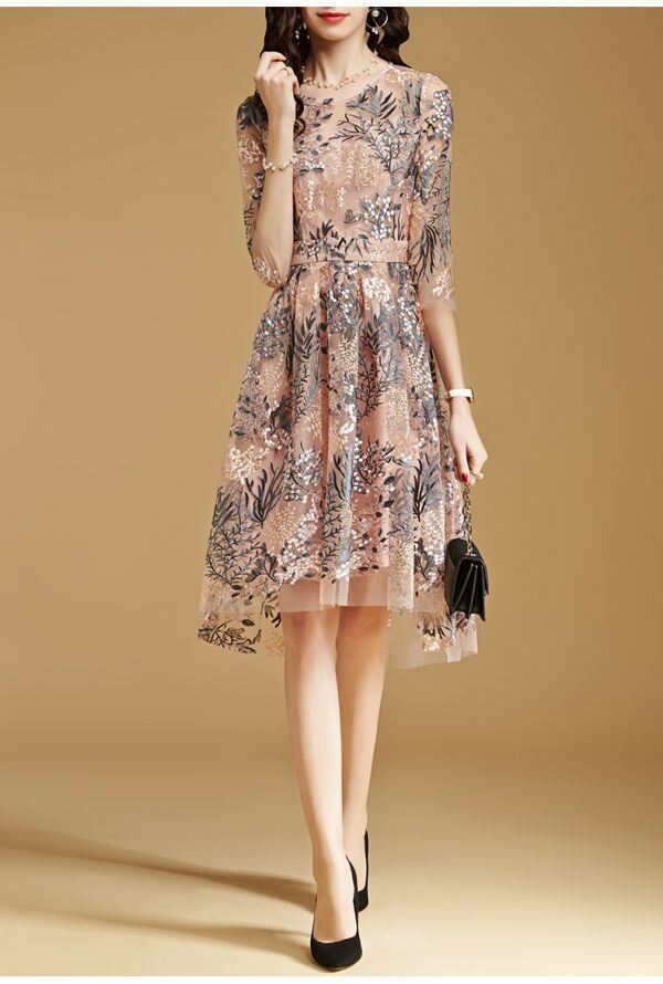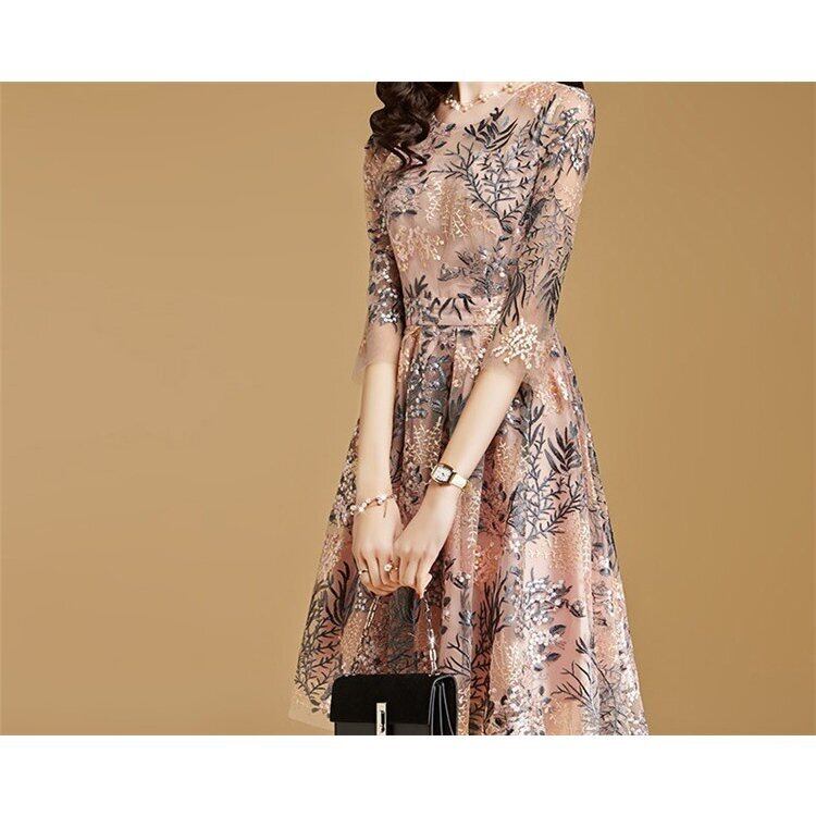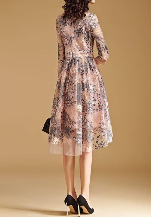ラベンダー色ボタニカル刺繍の上質ワンピースです。やさしいラベンダーのチュール地にカラフルなボタニカル刺繍をほどこした可愛らしいデザイン。透け感がキュートなセクシー感を演出。優しい感じのワンピ-スです。背中ファスナーあり。裏地あり。