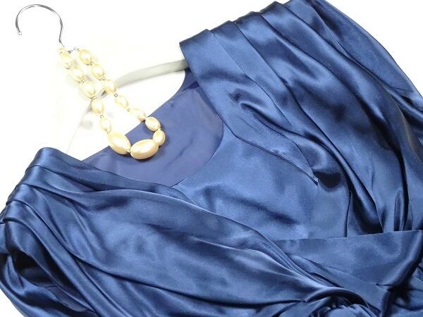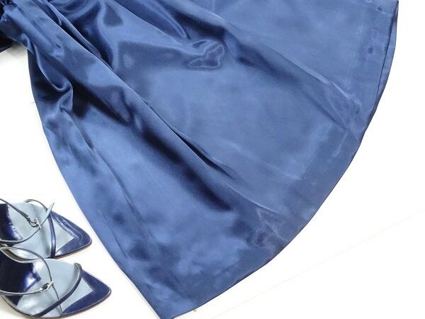 エレガント上質パ-ティ-膝丈ワンピ-スです。気品に満ちたとてもエレガントで上品なひとクラス上をいく一品です。裏地有。背中ファスナ-なし(かぶるタイプ)。