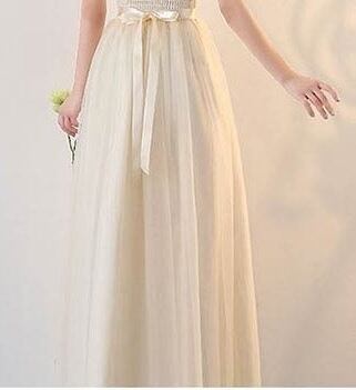 胸もとに立体的な刺繍が施されたシャンパンゴールドのロングドレスです。背中部分がシャーリング仕様になっているので伸縮性があり、着心地の大変良いデザインでパーティや結婚式、コンサートなど、様々なシーンで活躍してくれる一着です。右サイドファスナー有。背中シャーリング。裏地有。