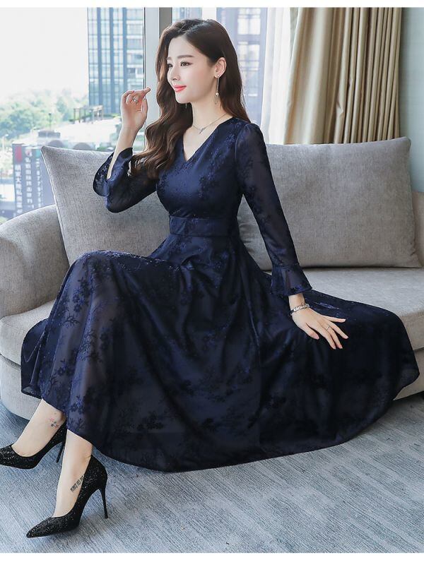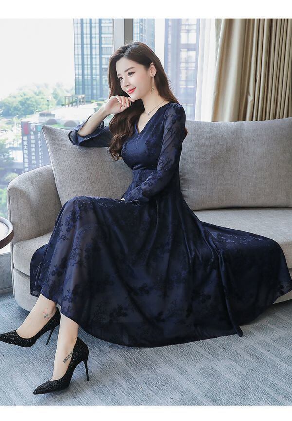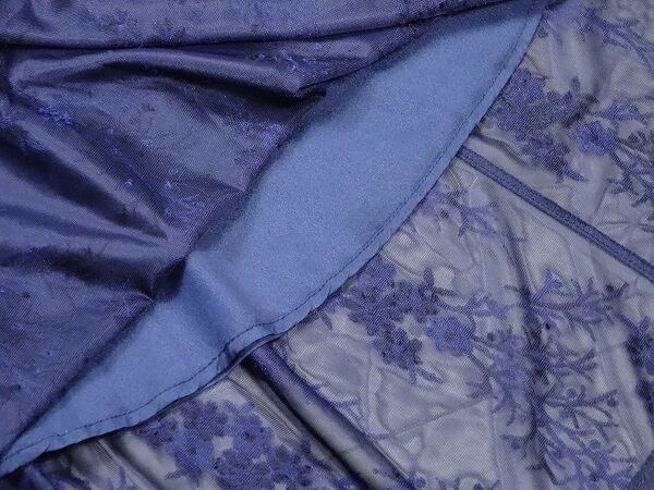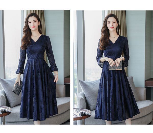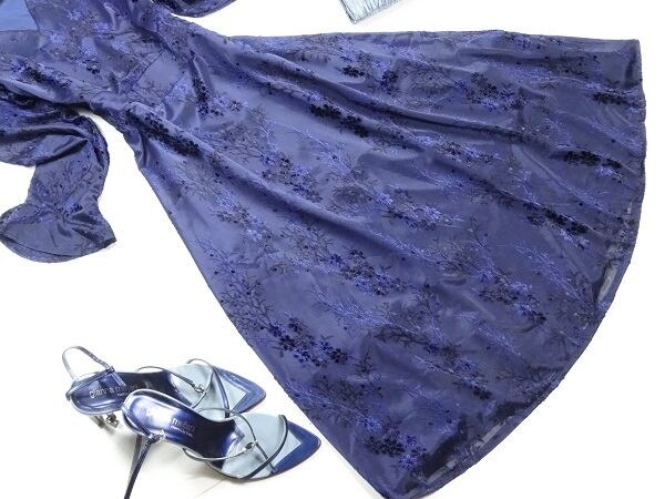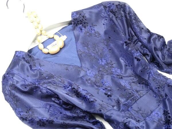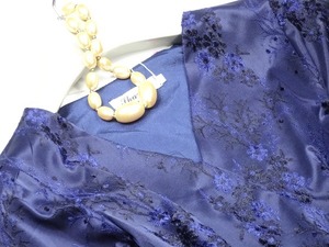 透け感が美しいVネックレース仕様のワンピ-ス。トップス部分はカシュクール風のVネック仕様。ウエストで切り返しが入り、裾までボタニカル柄をあしらったレース仕立ての生地をたっぷりと使用。ボリュームを出し華やかな印象に。袖は透け感があり、二の腕がほんのりと見え、品の良いセクシー感をかもしだしています。シックでやさしくエレガントな一着です。右脇ファスナーあり。裏地付き。