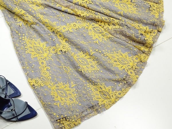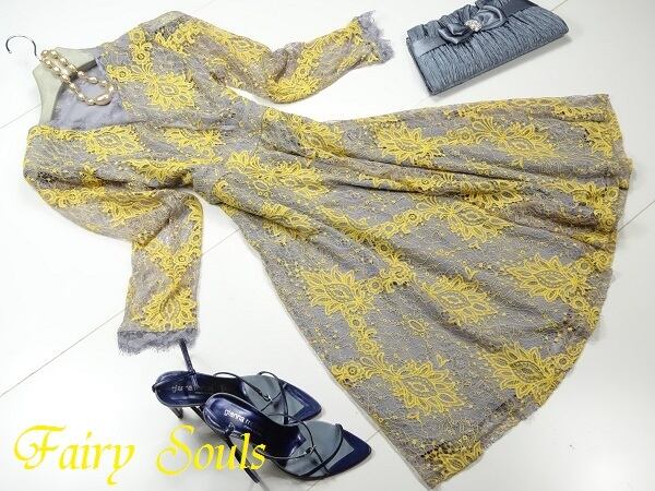 総レ-スカシュク-ル風ワンピースです。程よく開いたVネックやウエストラインのシルエットがとても綺麗です。パーティやイベント、コンサート、結婚式にと、さまざまシーンで活躍してくれる美しい一着。背中ファスナー有。裏地付。