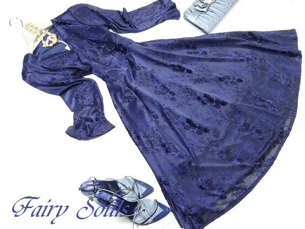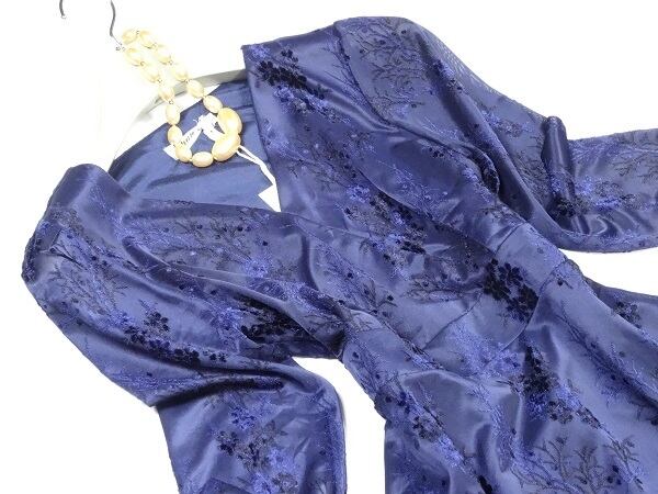透け感が美しいVネックレース仕様のワンピ-ス。トップス部分はカシュクール風のVネック仕様。ウエストで切り返しが入り、裾までボタニカル柄をあしらったレース仕立ての生地をたっぷりと使用。ボリュームを出し華やかな印象に。袖は透け感があり、二の腕がほんのりと見え、品の良いセクシー感をかもしだしています。シックでやさしくエレガントな一着です。右脇ファスナーあり。裏地付き。