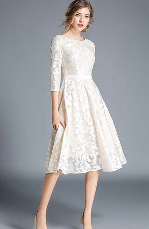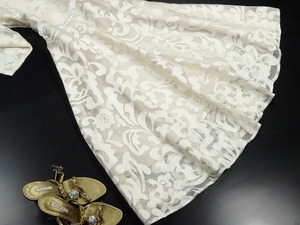 透け感が美しい総レース仕様のワンピ-スです。ウエストで切り返しが入り、裾までボタニカル柄をあしらったレース仕立ての生地をたっぷりと使用。ボリュームを出し華やかな印象に。袖は透け感があり、二の腕がほんのりと見え、品の良いセクシー感をかもしだしています。シックでやさしくエレガントな一着です。右脇ファスナーあり。裏地付き。