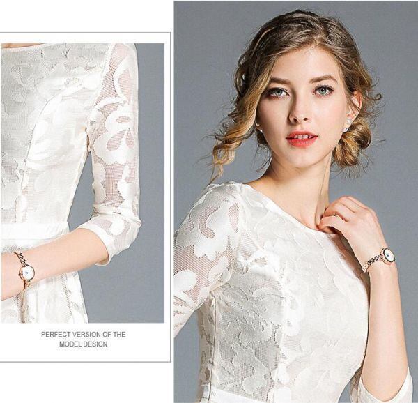 透け感が美しい総レース仕様のワンピ-スです。ウエストで切り返しが入り、裾までボタニカル柄をあしらったレース仕立ての生地をたっぷりと使用。ボリュームを出し華やかな印象に。袖は透け感があり、二の腕がほんのりと見え、品の良いセクシー感をかもしだしています。シックでやさしくエレガントな一着です。右脇ファスナーあり。裏地付き。