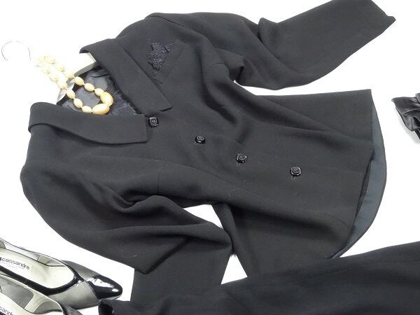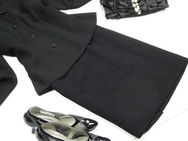 ブラックフォーマルジャケットとタイトスカートのセットです。とてもエレガントです。ジャケット前4つボタン。タイトスカートはファスナー有。裏地有り。